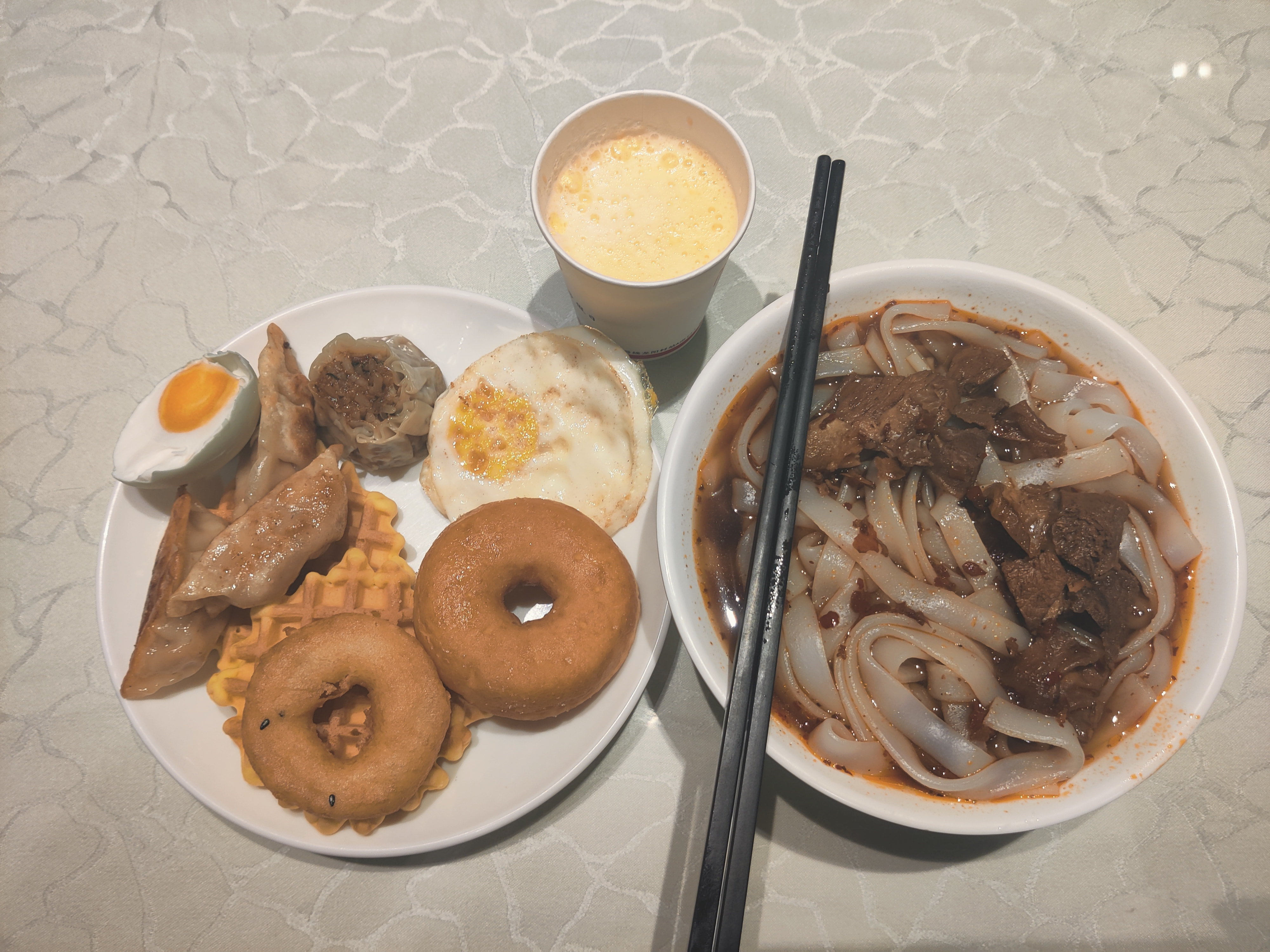 刷抖音看到小区附近的水汇新开了一家对外的早餐自助,直播间团购价9.9元一位,限制使用时段7:00-9:30,性价比很高,算是副业化经营。近些年来看到很多酒店都开始对外提供自助服务了,盘活闲置时段和客流,环境比路边早餐店干净、安静。9.9 能吃饱吃好,比单点还便宜。早上吃的有点多了,中午就不打算吃了。
